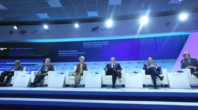 روس کے بحیرہ اسود کے سیاحتی مقام سوچی میں منعقدہ والڈائی مباحثہ کلب کے سالانہ اجلاس کے ایک سیشن میں مہمان شریک ہیں۔(شِنہوا)