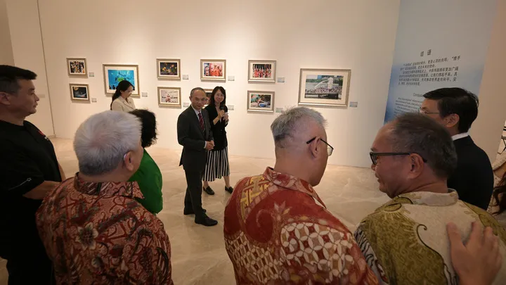 سنگاپور میں واقع چینی ثقافتی مرکز میں شہری چین اور سنگاپور کے درمیان سفارتی تعلقات کی 35ویں سالگرہ کی مناسبت سے منعقدہ تصویری نمائش دیکھ رہے ہیں-(شِنہوا)