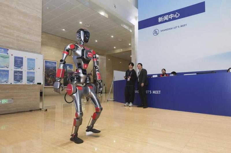 چین ، مشرقی شہر شنگھائی کے قومی نمائش و کنونشن مرکز(شنگھائی) میں 7 ویں چائنہ بین الاقوامی درآمدی نمائش  کے میڈیا مرکز میں معلومات فراہم کرنے والا ایک انسان نما روبوٹ دیکھا جاسکتا ہے۔(شِنہوا)