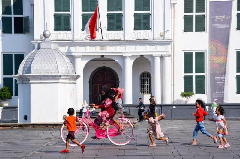 انڈونیشیا، لوگ جکارتہ شہر کے مردیکا میدان کا  دورہ کررہے ہیں۔(شِنہوا)