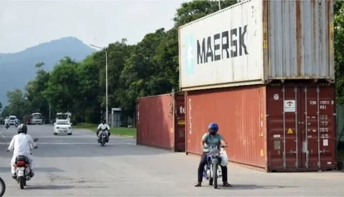 اسلام آباد میں سیکیورٹی خدشات کے پیش نظر ڈی چوک سمیت ریڈ زون جانیوالے راستے کنٹینرز لگا کر بند کر دیئے گئے۔