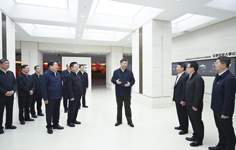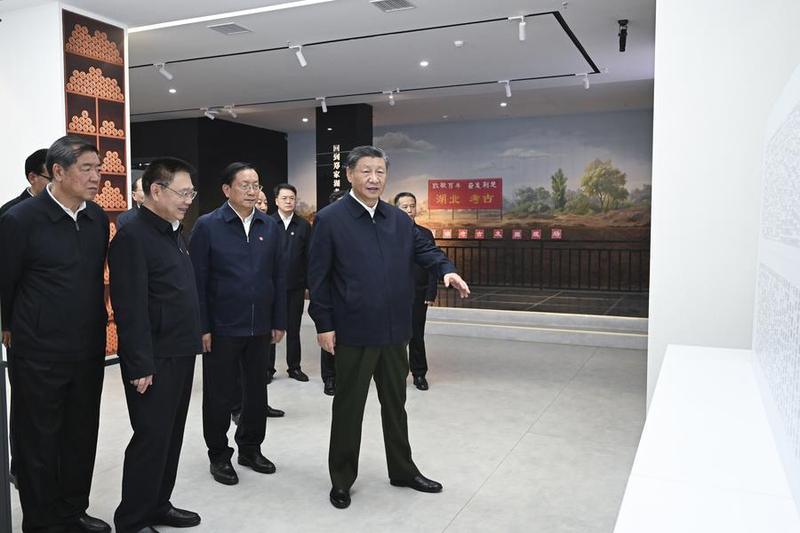 چینی صدر شی جن پھنگ صوبے ہوبے کی یون مینگ کاؤنٹی میں ثقافتی آثار کے تحفظ، تحقیق اور استعمال بڑھانے کی کوششوں سے متعلق آگاہی حاصل کرنے کے لئے ایک عجائب گھر کا دورہ کررہے ہیں۔(شِنہوا)