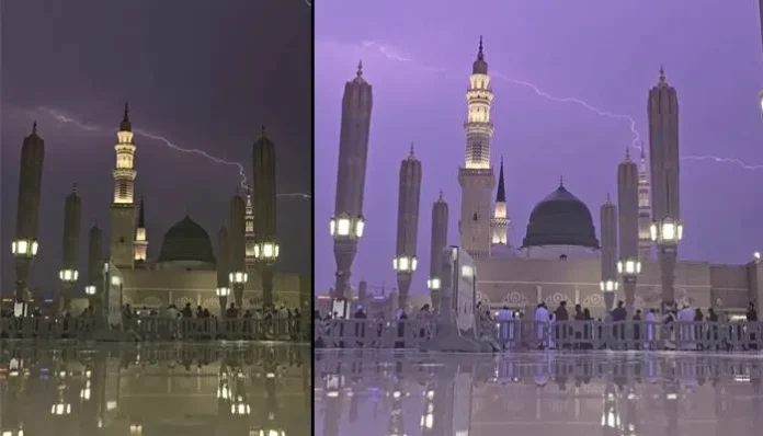 اللہ کی خاص رحمت کا نزول، گزشتہ روز مدینہ منورہ اور اسکے ملحقہ علاقوں میں کالی گھٹائوں نے ڈیرے ڈالے اور گرج چمک کیساتھ خوب جم کر بارش برسی۔