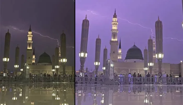 مسجد نبوی شریف میں بھی باران رحمت خوب دھواں دھار ہوئی جس سے روضہ اطہر اور گنبد خضریٰ پر بارش کے قطرے برس کر روح پرور اور ایمان افروز مناظر پیش کر رہے تھے۔