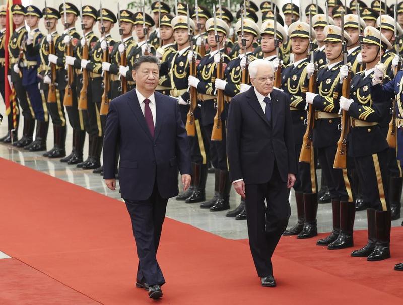 چین، دارالحکومت بیجنگ کے عظیم عوامی ہال کے شمالی ہال میں استقبالیہ تقریب کے دوران چین کے صدر شی جن پھنگ نے اٹلی کے صدر سرگیو ماتاریلا کے لئے استقبالیہ تقریب کا انعقاد کیا۔(شِنہوا)