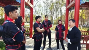چینی کُنگ فو کے ماہر آن جیان چھیو غیر ملکی طلبہ کو چینی مارشل آرٹس کی ثقافت سمجھا رہے ہیں-(شِنہوا)