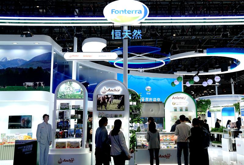 شنگھائی، 7 ویں چین بین الاقوامی درآمدی نمائش (سی آئی آئی ای)میں لوگ مستقل طور شرکت کرنے والی کمپنی فونٹیرا کے بوتھ کا دورہ کررہے ہیں- (شِنہوا)