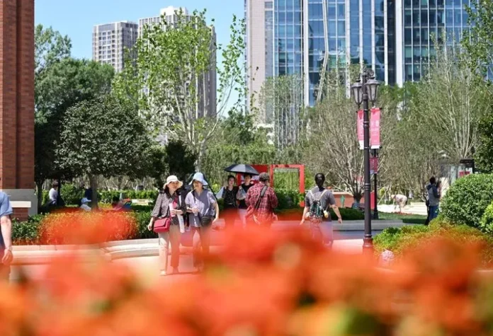 چین کے شمالی شہر تیانجن کے حہ پھنگ ضلع میں واقع ایک چھوٹے پارک میں لوگ چہل قدمی کر رہے ہیں۔(شِنہوا)