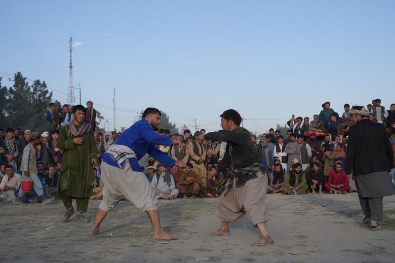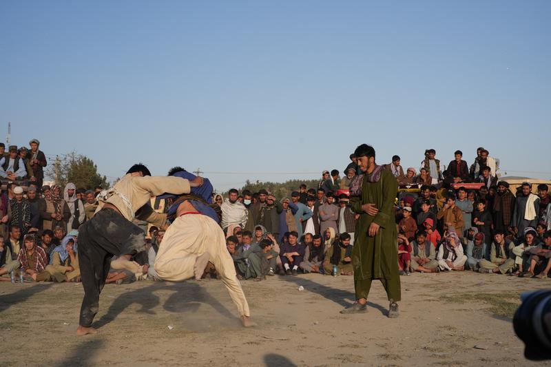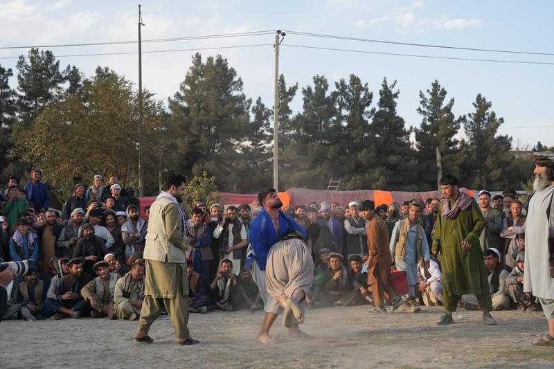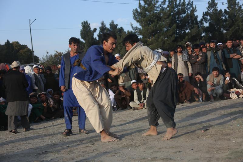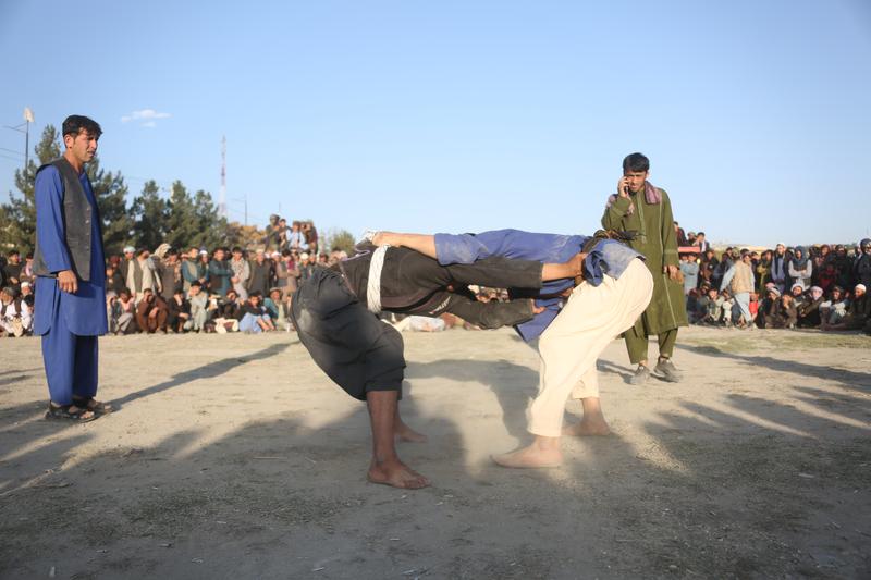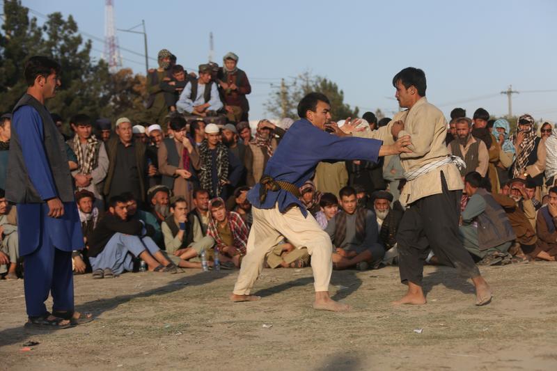 کابل (شِنہوا) افغان شہری افغانستان کے دارالحکومت کابل میں منعقد ہونے والے روایتی کُشتی کے مقابلوں سے محظوظ ہوئے۔ ہر جمعہ کو منعقد ہونے والے مقابلوں کو دیکھنے کے لئے بڑی تعداد میں لوگ موجود ہو تے ہیں۔