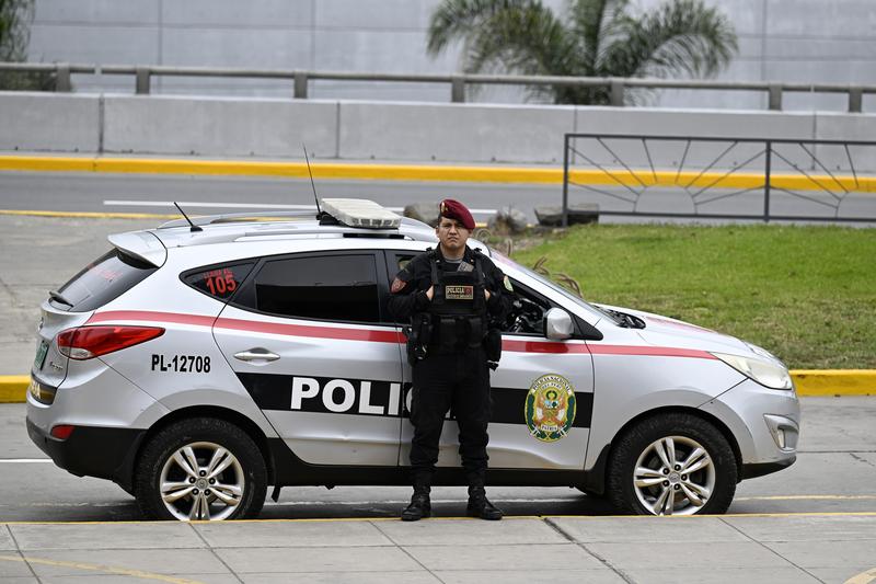 لیما میں 31 ویں ایپیک اقتصادی سربراہ اجلاس کے موقع پر لیما کنونشن مرکز کے باہر پولیس افسران پہرہ دے رہے ہیں ۔ (شِنہوا)