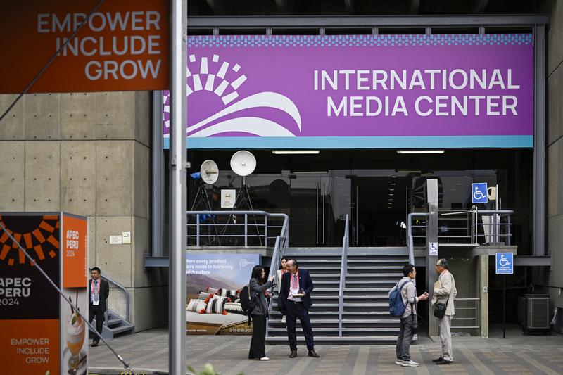 لیما میں ایپیک 2024 بین الاقوامی میڈیا مرکز کا بیرونی منظر۔ (شِنہوا)