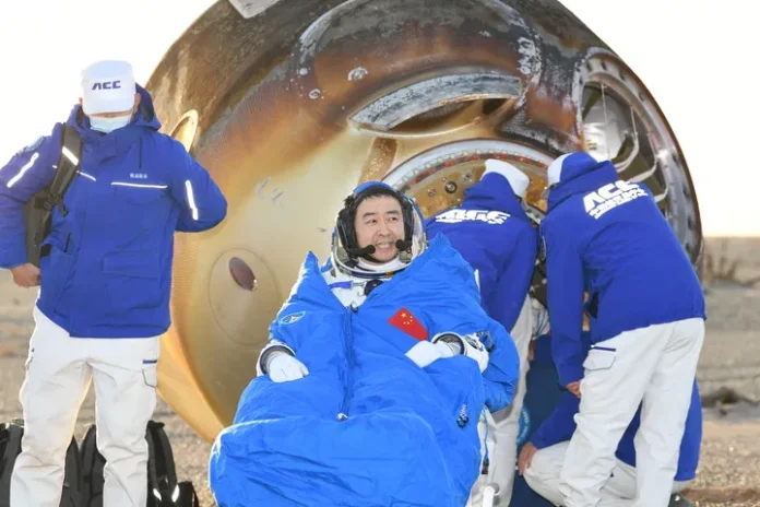 عملے کے کمانڈر چھن ڈونگ زمین پر اترنے کے بعد سب سے پہلے ریٹرن کیپسول سے باہر آئے۔ وہ 400 سے زائد دن مدار میں گزارنے والے پہلے چینی خلا نورد بن گئے ہیں۔