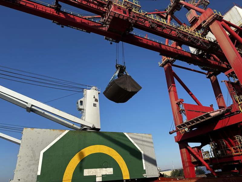 پورٹ قاسم بجلی گھر کے ٹرمینل پر جہاز کا گریب بکٹ کام کررہا ہے۔ (شِنہوا)