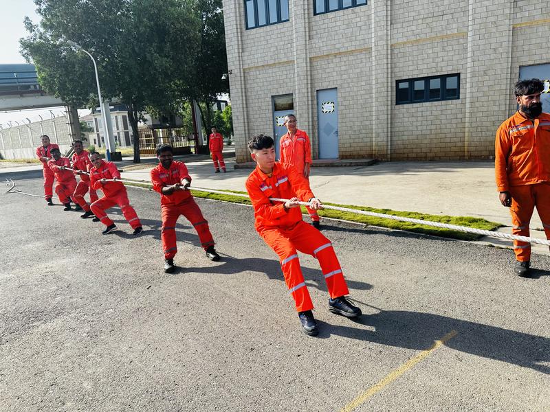 پورٹ قاسم بجلی گھر کا عملہ رسی کشی کے مقابلے میں حصہ لے رہا ہے۔(شِنہوا)