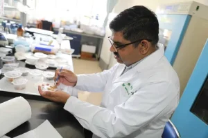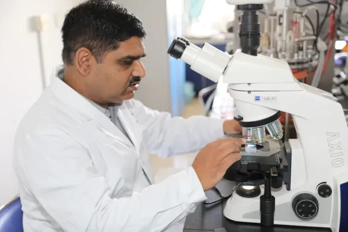 علی شوکت لیبارٹری میں تجربہ کر رہے ہیں-(شِنہوا)