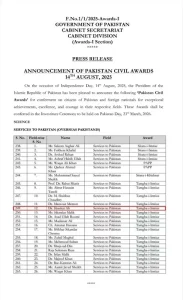 علی شوکت کو تمغہ امتیاز عطا کئے جانے کی فہرست کا سکرین شاٹ-(شِنہوا)