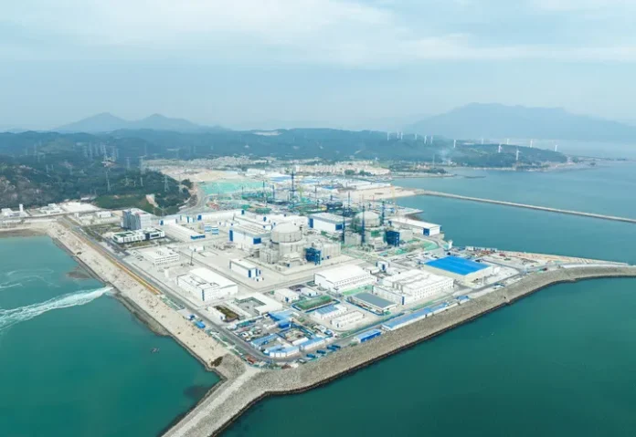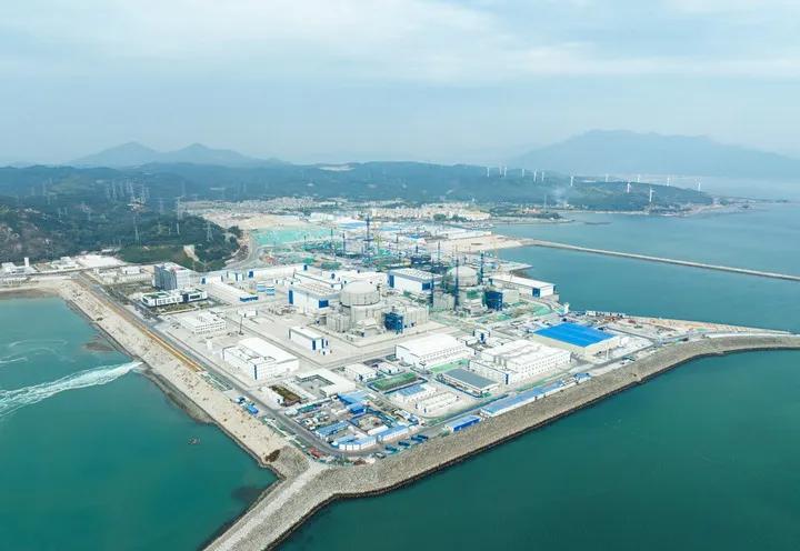 چین کے جنوب مشرقی صوبے فوجیان کے شہر ژانگ ژو میں زیرتعمیر ژانگ ژو جوہری بجلی گھر کا منظر۔(شِنہوا)