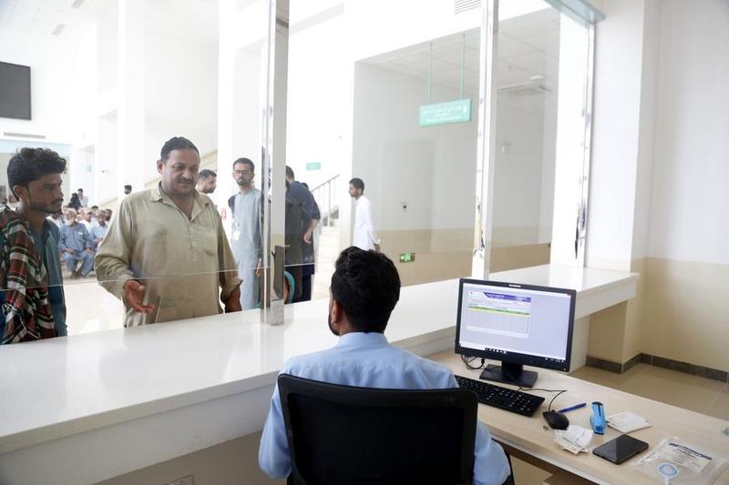 گوادر کے پاک ۔ چین دوستی اسپتال میں مریض اندراج کرارہے ہیں۔ (شِنہوا)