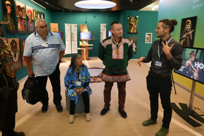 اٹلی کے دارالحکومت روم میں ایف اے او کے صدر دفتر میں قائم خوراک اور زراعت میوزیم میں ایک گائیڈ لوگوں کو بریف کر رہا ہے۔(شِنہوا)