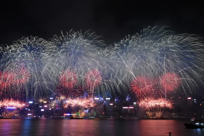 ہانگ کانگ میں گھوڑے کے سال کی خوشی میں آتش بازی کا مظاہرہ