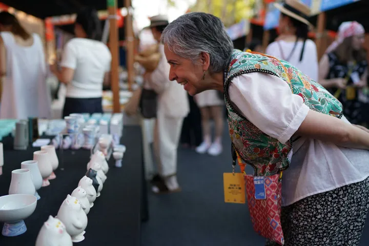 چین کے مشرقی صوبے جیانگ شی کے شہر جنگ دےژین میں منعقدہ چائنہ جنگ دے ژین انٹرنیشنل سرامکس ایکسپو 2025 کے ضمنی ایونٹ سرامکس کارنیوال میں رکھے گئے مٹی کے فن پاروں کو ایک غیر ملکی فنکارہ انہماک سے دیکھ رہی ہے۔(شِنہوا)