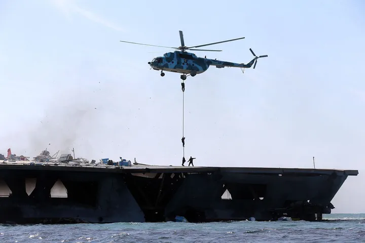 ایرانی اسلامی انقلاب گارڈز کے اہلکار عسکری مشقوں میں مصروف ہیں-(شِنہوا)