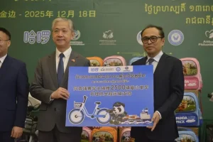 چینی این جی او کا کمبوڈیاکے طلبہ کے لئے 2 ہزار 500 سائیکلوں اور 21 ہزار 600 پانڈا پیکس کا عطیہ