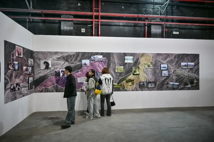 چین کے شمالی صوبے شنشی کے شہر جن ژونگ کے قدیم قصبے پھنگ یاؤ میں لوگ 25 ویں پھنگ یاؤ بین الاقوامی فوٹوگرافی میلے میں تصاویر دیکھ رہے ہیں-(شِنہوا)