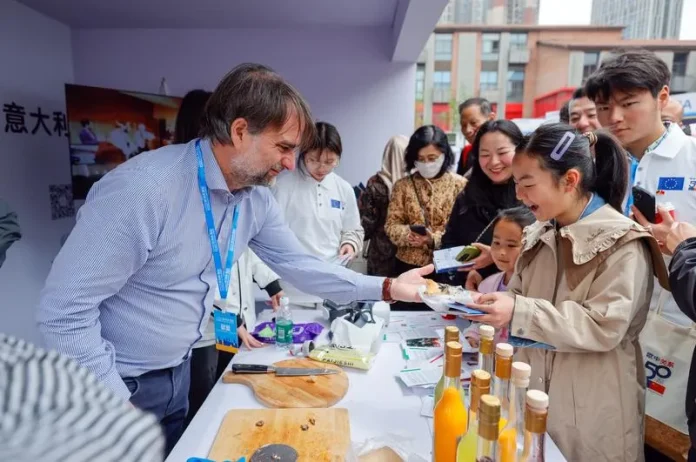چین کے جنوب مغربی صوبے سیچھوان کے شہر چھنگ دو میں منعقدہ چھنگ دو یورپ ثقافتی سیزن 2025 اور یورپی ثقافتی سٹریٹ میں اٹلی کے سٹال پر سیاح پیزے کا ذائقہ چکھ رہے ہیں۔(شِنہوا)