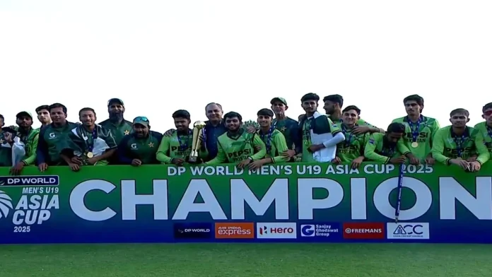 دبئی میں کھیلے جانیوالے انیس سال سے کم عمر کھلاڑیوں کے ایشیاء کپ کے فائنل میں پاکستان نے بھارت کو 191 رنز سے شکست دیکر ٹائٹل اپنے نام کرلیا، فائنل میں بھارت نے پاکستان کیخلاف ٹاس جیت کر پہلے فیلڈنگ کا فیصلہ کیا، پاکستان نے بیٹنگ کرتے ہوئے مقررہ 50 اوورز میں 8 وکٹوں کے نقصان پر 347 رنز بنائے اور بھارت کو جیت کیلئے 348رنز کا ہدف دیا، سمیر منہاس نے 17 چوکوں اور 9 چھکوں کی مدد سے دھواں دھار 172رنز کی اننگز کھیلی اور 103 رنز محض 71 گیندوں پر بنائے، سمیر ٹورنامنٹ کے ٹاپ سکورر ہیں، احمد حسین نے 56، عثمان خان نے 35، کپتان فرحان یوسف نے 19اور حمزہ ظہور نے 18رنز بنائے، محمد صیام 13 اور نقاب شفیق 12رنز کیساتھ ناٹ آٹ رہے۔
