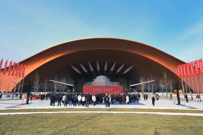 چین کے دارالحکومت بیجنگ کے ضلع شون یی میں کیپیٹل انٹرنیشنل ایگزیبیشن اینڈ کنونشن سنٹر (سی آئی ای سی سی) کی افتتاحی تقریب کامنظر۔(شِنہوا)