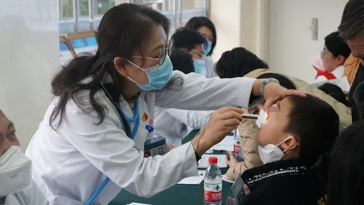 چین کے جنوب مغربی صوبے گوئی ژو کے شہر گوئی یانگ میں بچوں کو کثیر شعبہ جاتی مشاورت فراہم کرنے کے لئے گوئی ژو پراونشل میڈیکل ہسپتال اور گوئی ژو ہاسپٹل آف شنگھائی چلڈرن کی جانب سے منعقدہ ایونٹ میں ایک ڈاکٹر لڑکے کا طبی معائنہ کررہا ہے-(شِنہوا)