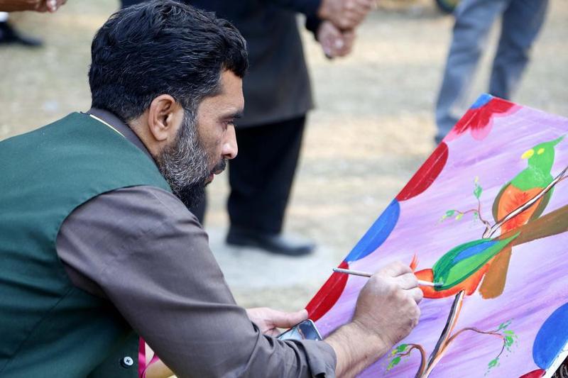اسلام آباد میں لوک میلہ تہوار کے دوران ایک فنکار مصوری کررہا ہے۔(شِنہوا)