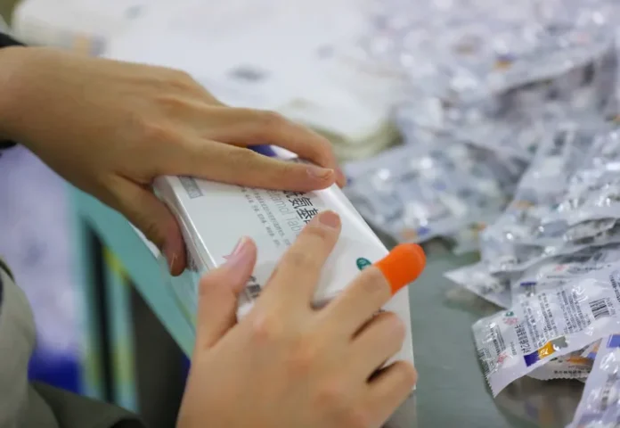 چین کے شمال مشرقی صوبے لیاؤننگ کے شہر شین یانگ میں نارتھ ایسٹ فارما کی ورکشاپ میں پیراسیٹامول کی گولیاں پیک جارہی ہیں-(شِنہوا)