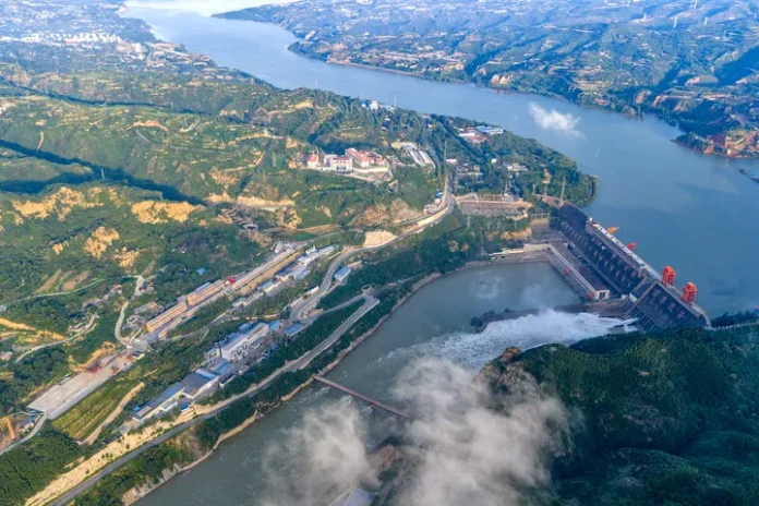 چین کے وسطی صوبے ہینان میں دریائے زرد پر واقع سان من شیا آبی ذخیرے کا منظر۔(شِنہوا)