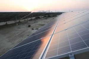 چین-پاکستان اقتصادی راہداری (سی پیک) کے تحت پاکستان کے شہر بہاولپور میں لگائے جانے والے شمسی بجلی گھر کا منظر دیکھا جاسکتا ہے۔(شِنہوا)