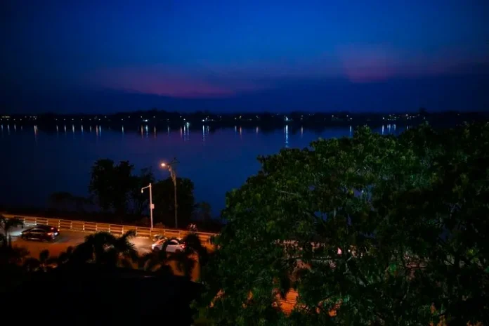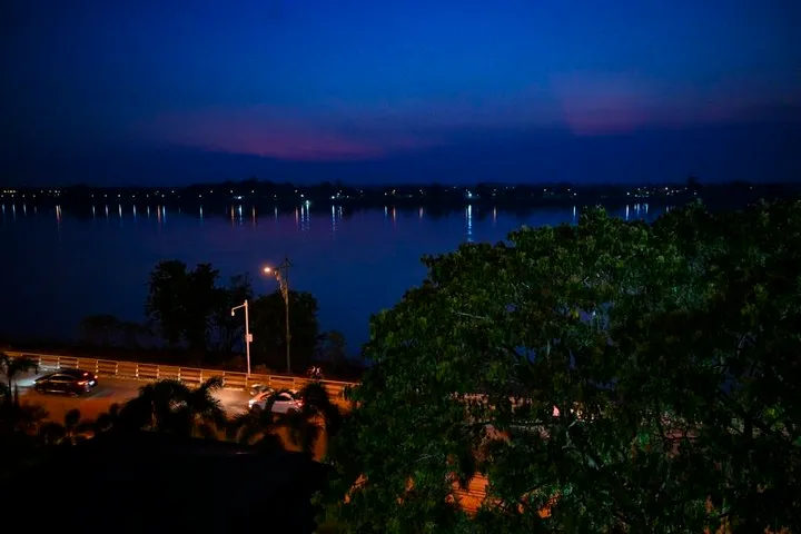 لاؤس کے دارالحکومت وینتیان میں دریائے می کونگ کا رات کامنظر-(شِنہوا)