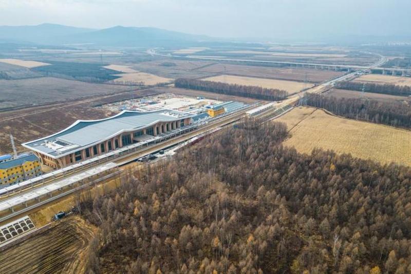 چین ، شمال مشرقی صوبے حئی لونگ جیانگ کے علاقے یی چھون کے یی چھون مغربی ریلوے اسٹیشن کے تعمیراتی مقام کو دیکھا جاسکتا ہے۔ (شِنہوا)