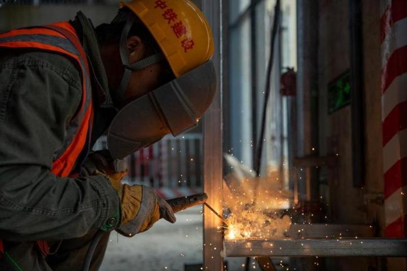 چین ، چائنہ ریلوے کنسٹرکشن گروپ کمپنی لمیٹڈ کا ایک ملازم شمال مشرقی صوبے حئی لونگ جیانگ کے علاقے یی چھون کے یی چھون مغربی ریلوے اسٹیشن کے تعمیراتی مقام پر ویلڈنگ کا کام کررہا ہے۔ (شِنہوا)