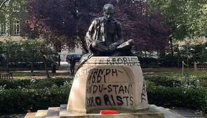 نامعلوم افراد نے لندن کے تاریخی ٹیویسٹاک اسکوائر میں نصب مہاتما گاندھی کے مجسمے کو مسخ کر دیا، یہ واقعہ گاندھی جیانتی اور اقوامِ متحدہ کے یومِ عدم تشدد کی تقریبات سے چند دن قبل پیش آیا ہے، اِن تقریبات کا انعقاد 2 اکتوبر کو کیا جائے گا۔