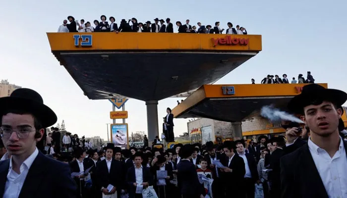 اسرائیلی فوج میں لازمی بھرتی کے قانون کیخلاف 2لاکھ سے زائد انتہائی قدامت پسند یہودیوں کی جانب سے احتجاج کیا گیا۔