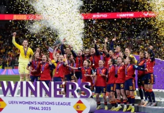 Spain’s women’s football team lifted the Women’s Nations League title after a commanding 3-0 win over Germany in the second leg of the final held in Madrid. The first leg in Kaiserslautern, Germany, had ended in a goalless draw.