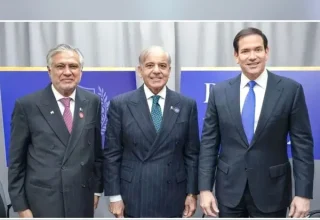 Prime Minister Muhammad Shehbaz Sharif met United States Secretary of State Marco Rubio on the sidelines of the Board of Peace Leaders’ meeting in Washington. The Prime Minister was accompanied by Deputy Prime Minister/Foreign Minister Sen. Mohammad Ishaq Dar.